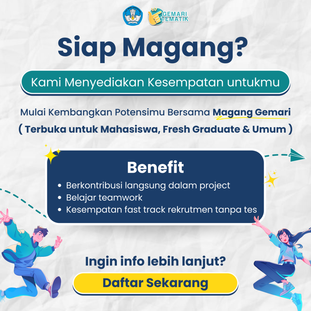 Merupakan program magang yang diselengarakan dari Gemari Tematik Indonesia. Terbuka untuk mahasiswa yang aktif dan program magang bisa dilaksanakan online dan offline.- 15 Januari 2026